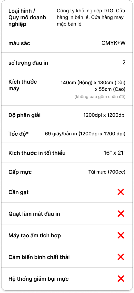 GTX600 tương đương với hai máy in DTG tiêu chuẩn thị